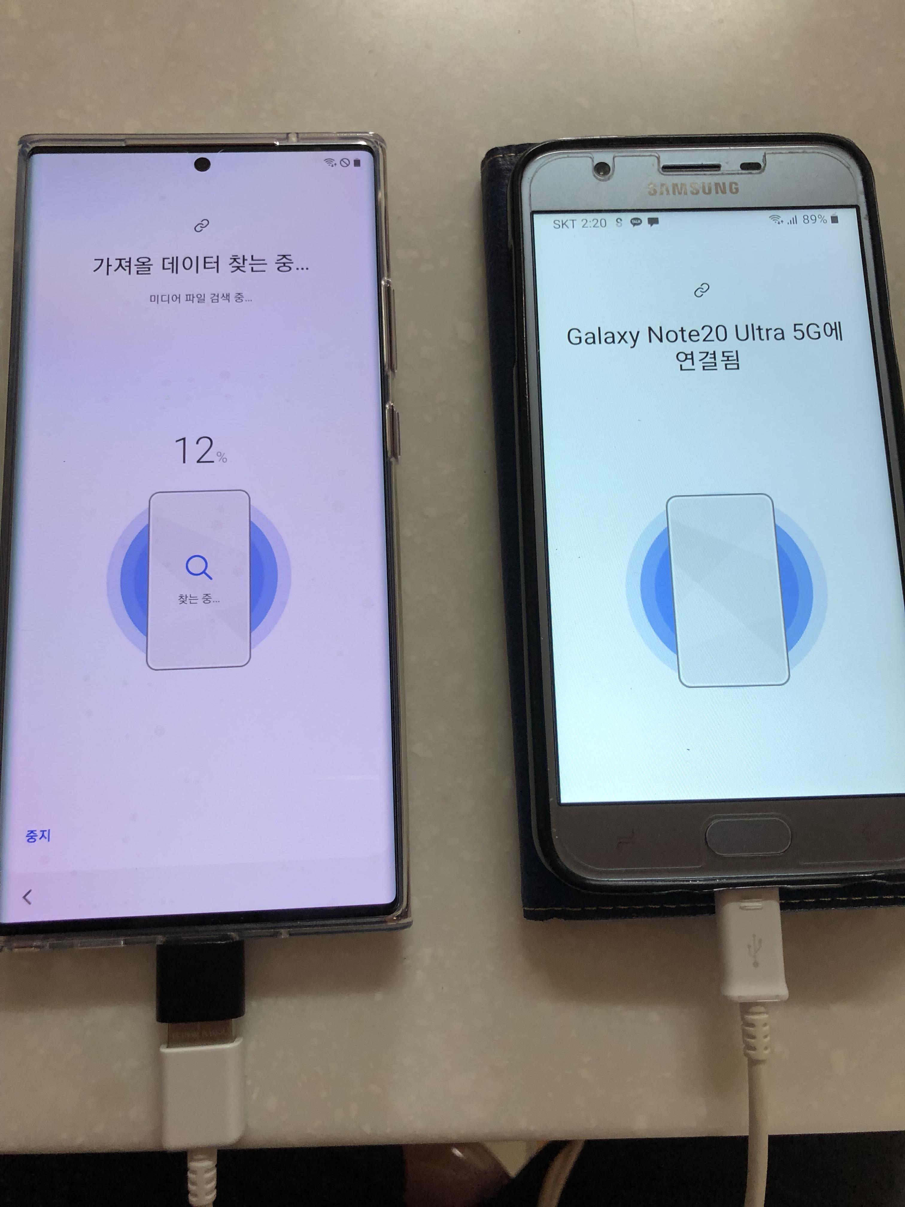 - 휴대폰 사이에 케이블로 연결하여 데이터 옮김