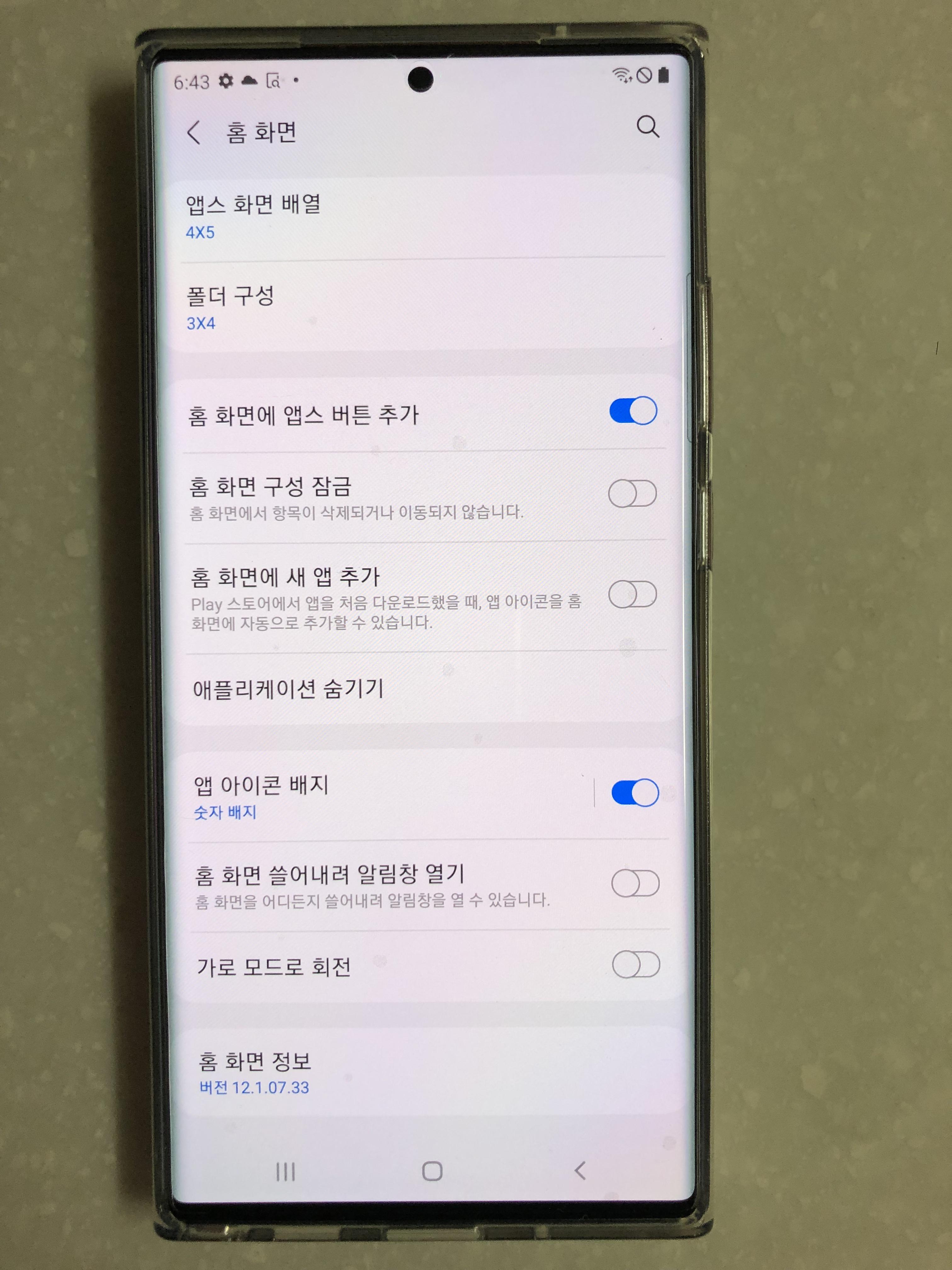 3. "홈화면에 앱스 버튼 추가" 버튼을 오른쪽으로 끌기