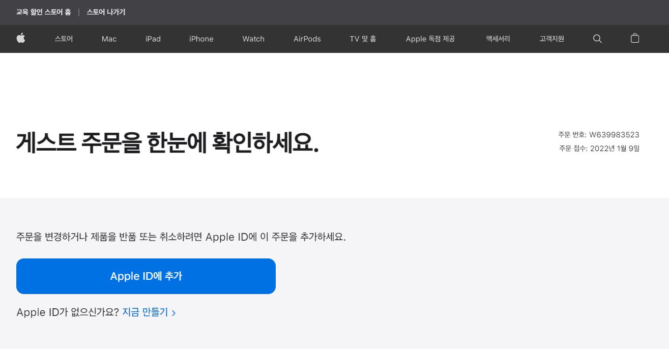 - 애플 ID 로그인해서, 주문을 진행하면 "주문을 처리할 수 없습니다" 에러가 계속 발생.