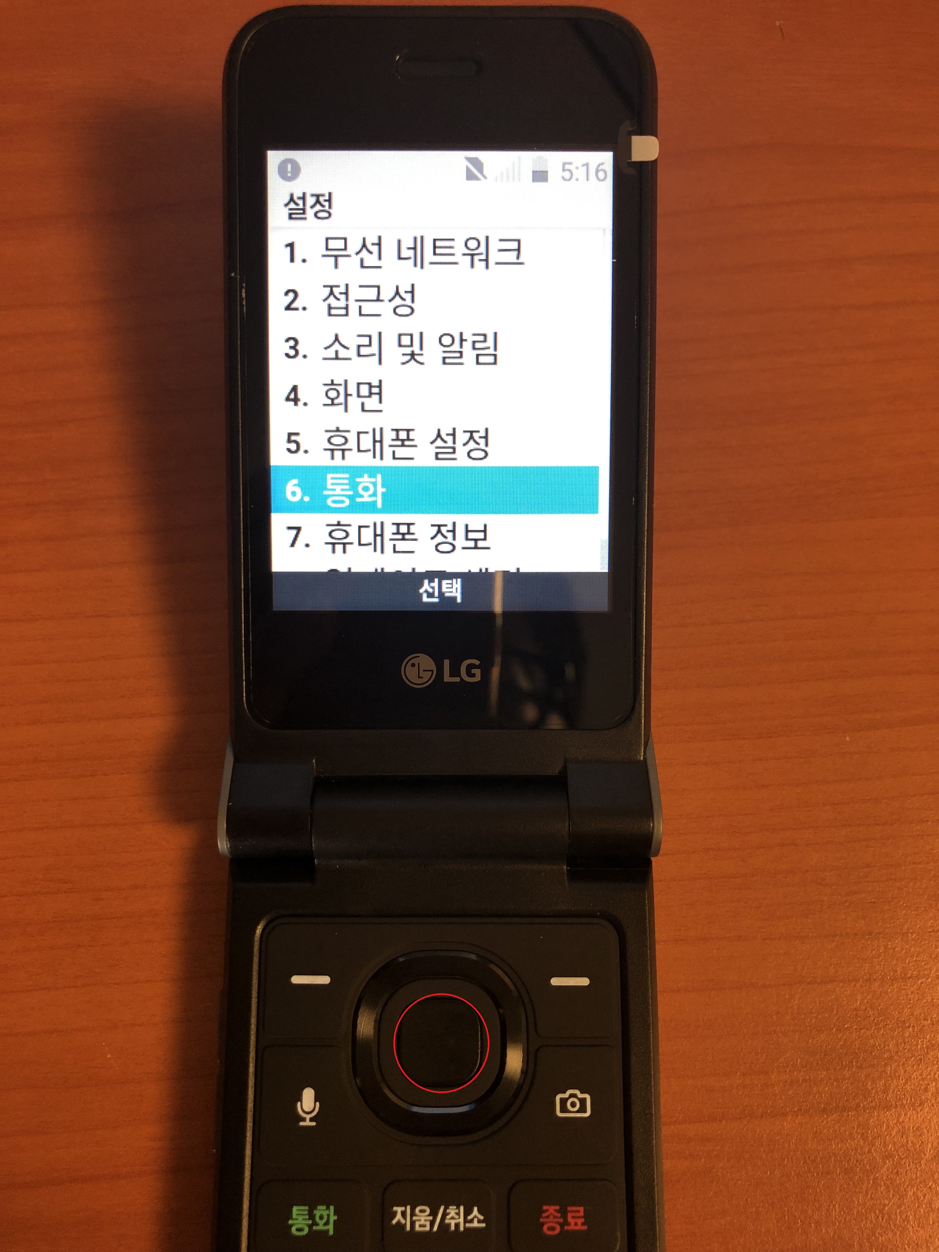 방법2: 방향키로 "통화"로 이동해서 빨간 동그라미 누른다.