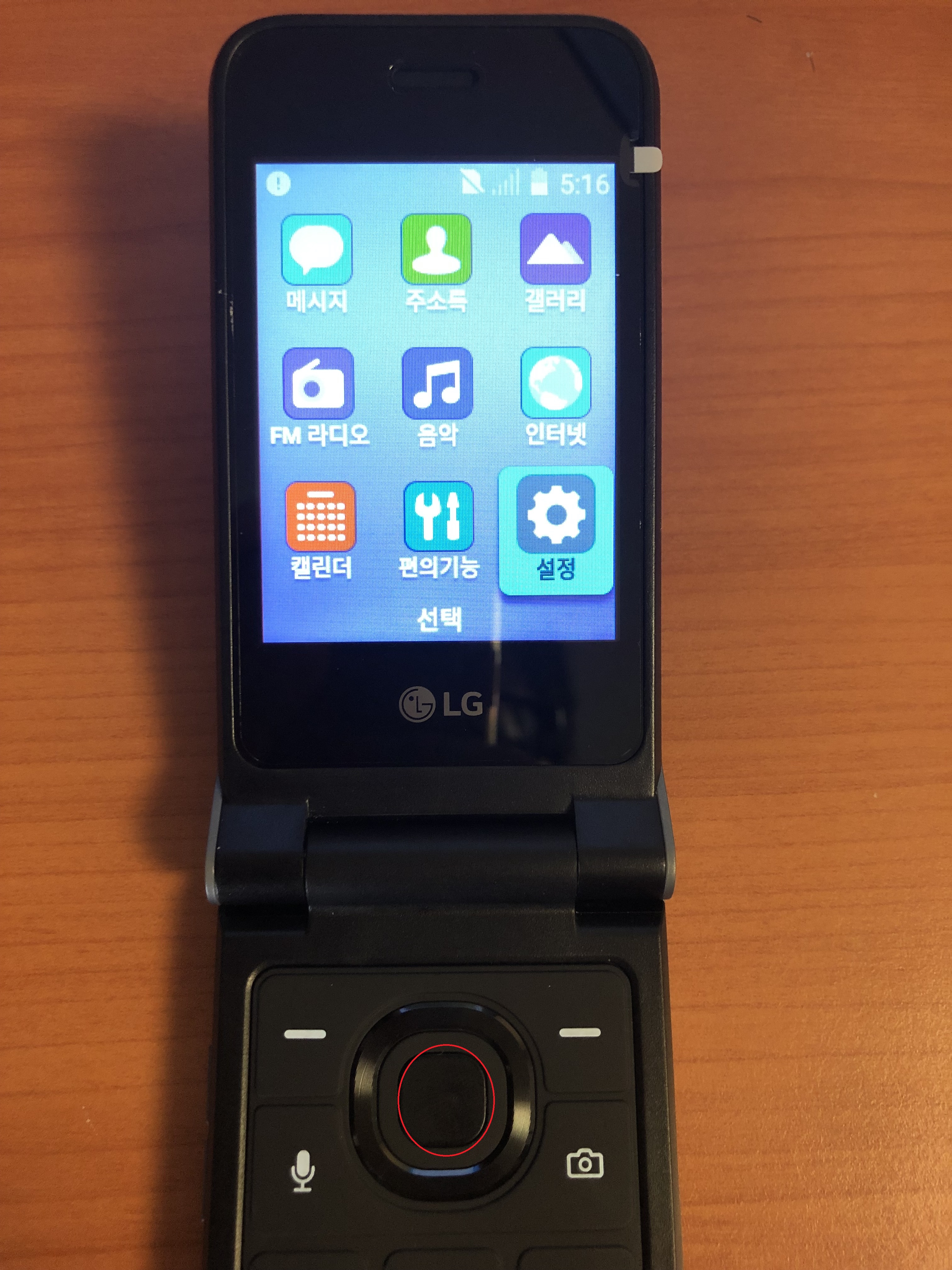 방향키로 "설정"으로 이동해서 빨간 동그라미를 누른다.