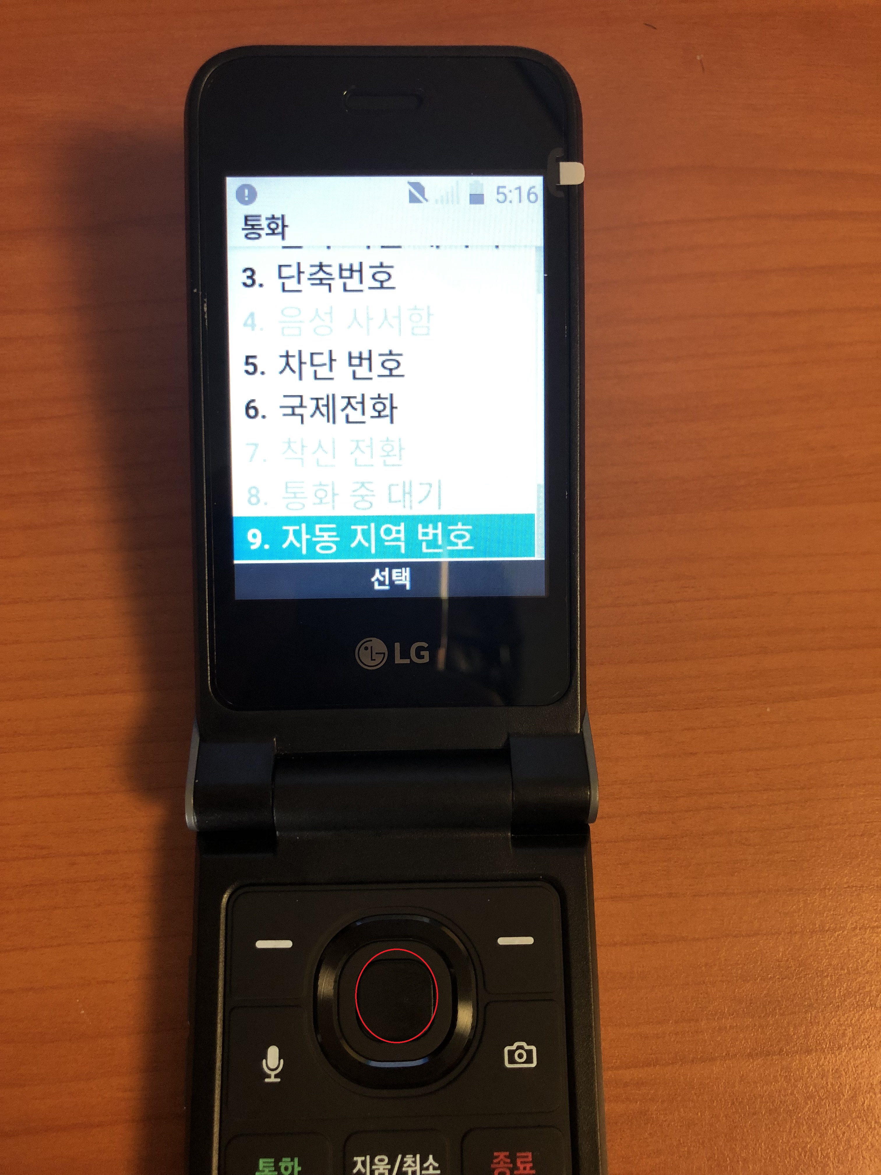방향키로 선택하고 싶은 지역번호로 이동해서 빨간 동그라미 누른다.