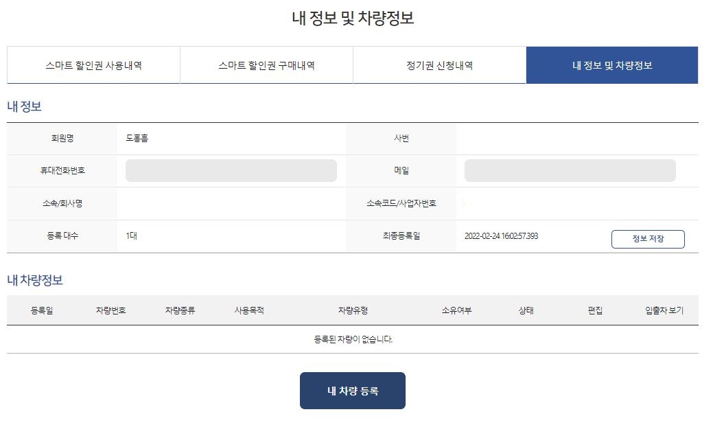 2) 정보 입력 후 "내 차량 등록" 클릭