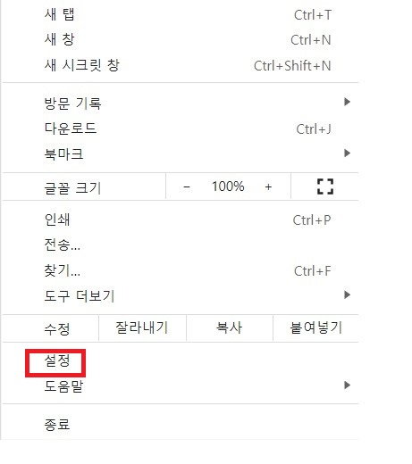 1. "설정" 클릭
