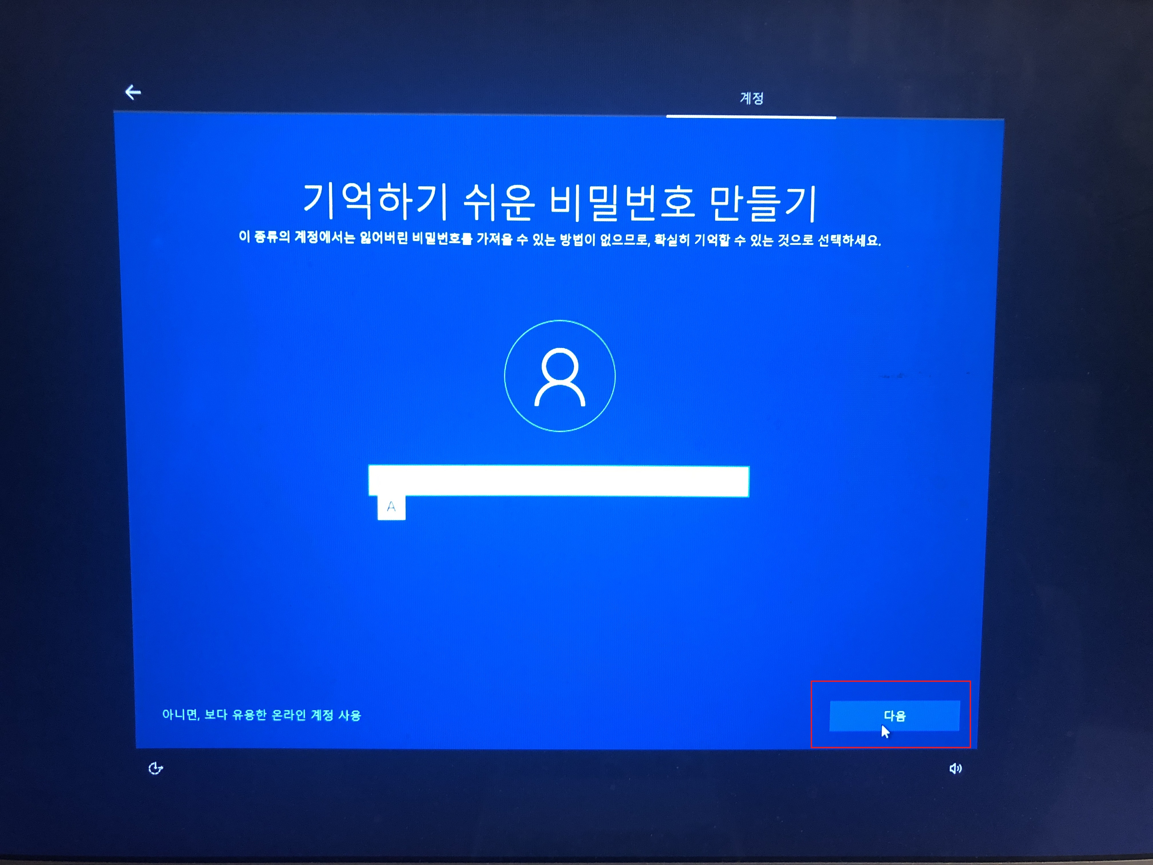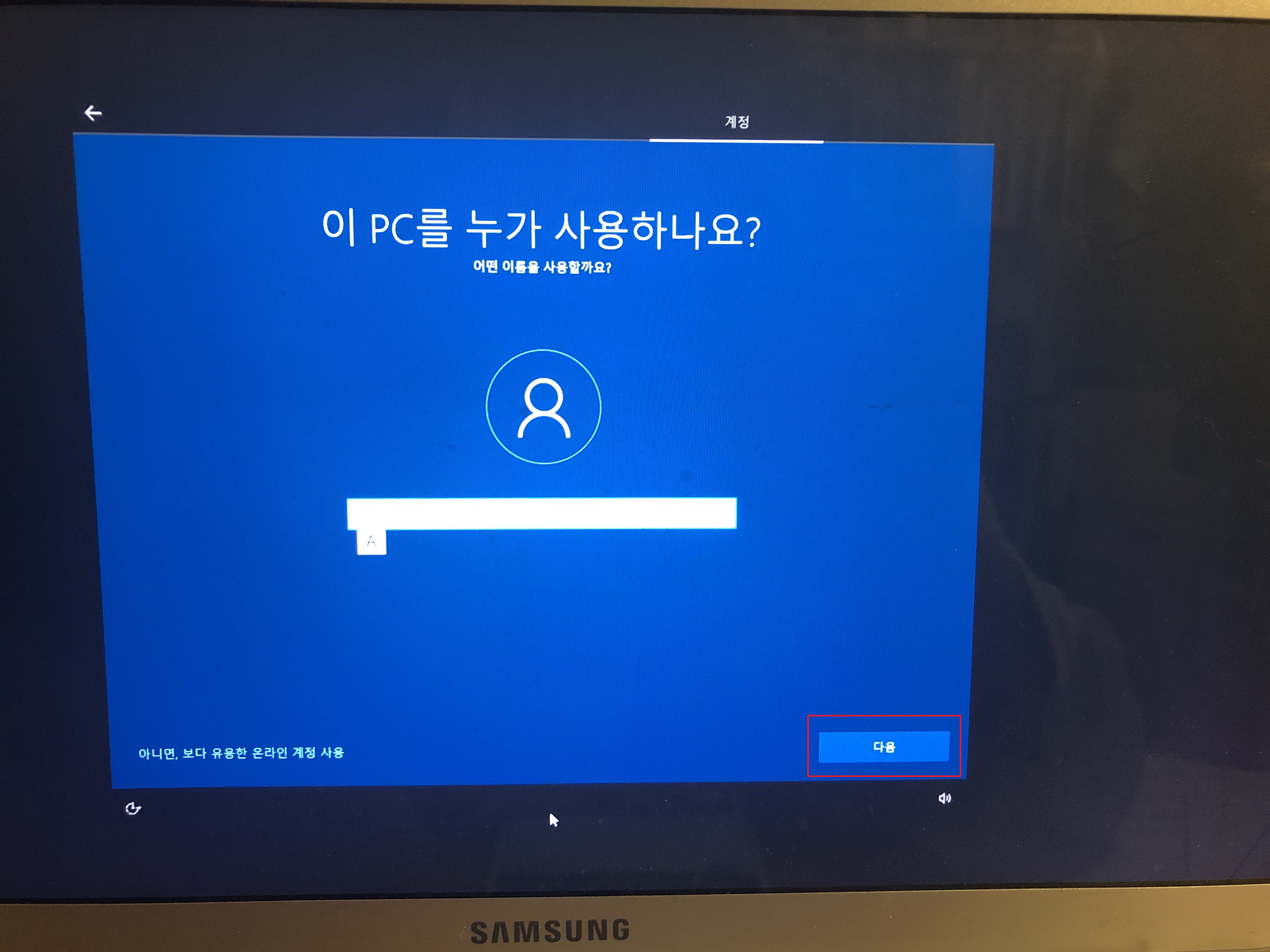 14. PC 사용자 이름 입력하고, "다음" 클릭