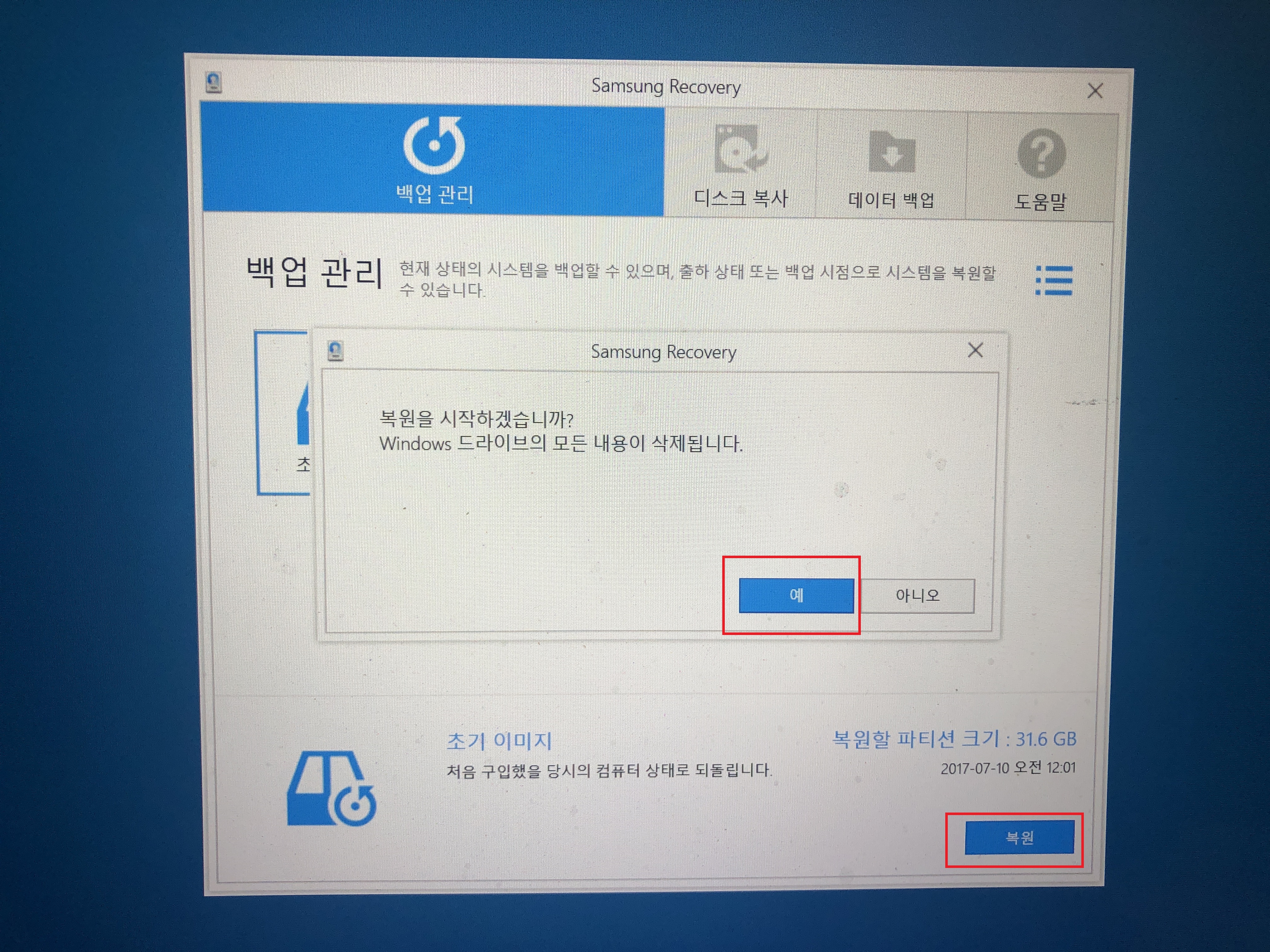 # 처음 받았던 대로 돌리는 방법(공장 초기화 방법)