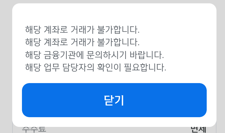 "해당계좌로 거래가 불가합니다"라고 뜨며, 송금이 안되었음.