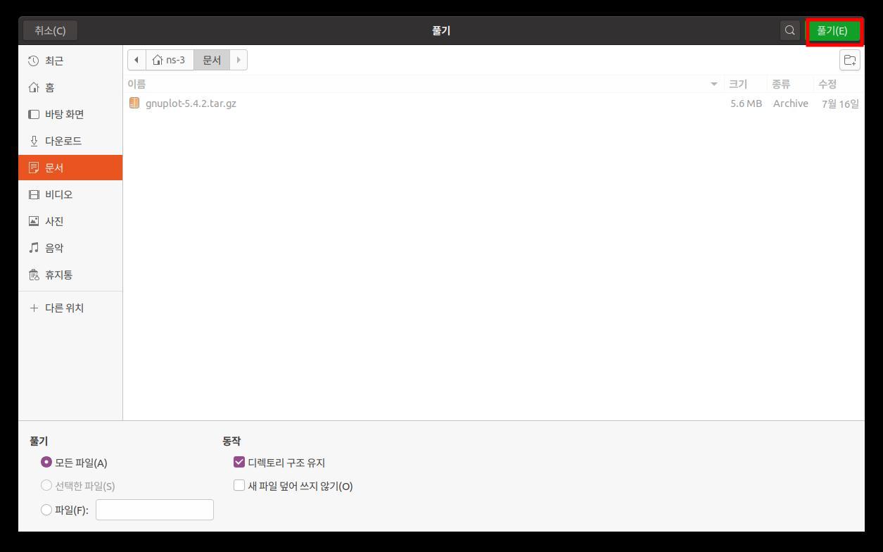 2) 터미널에서 tar -xvzf gnuplot-5.4.2.tar.gz 입력