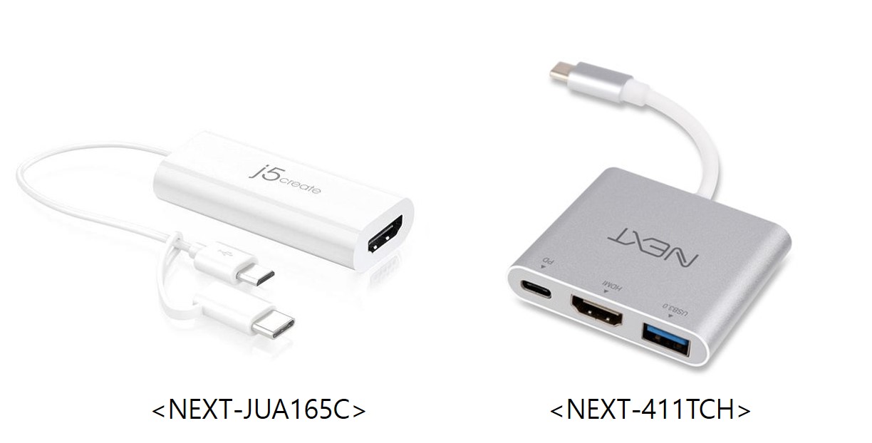 - 5핀 포트 & Ctype 포트 지원: [NEXT]C타입 or 마이크로 5핀 to HDMI(NEXT-JUA165C)