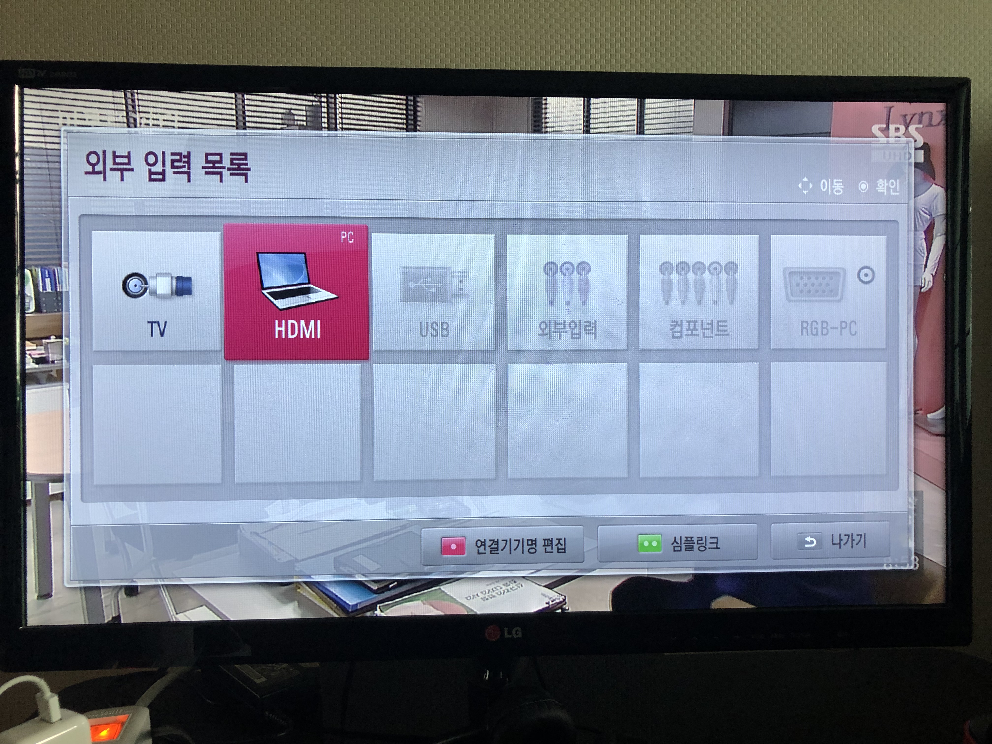 5. HDMI로 이동하고 확인(RGB 사용하는 경우, RGB로 이동해서 확인)
