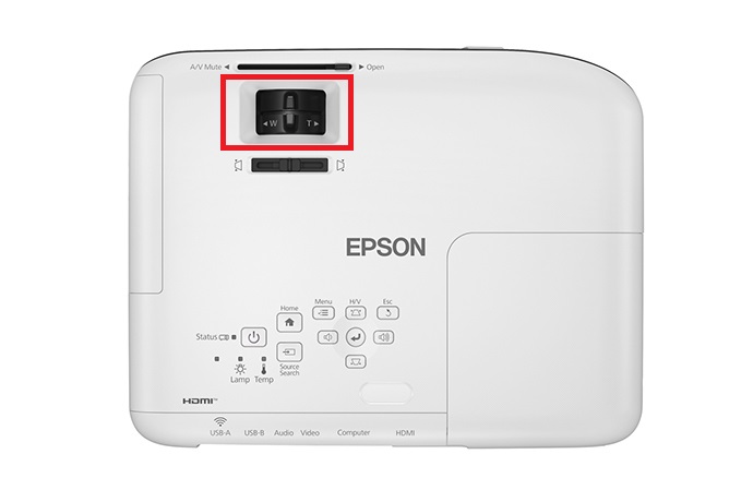 당연히 프로젝터 윗면(빨간 네모) 부분을 조정해서, 초점을 맞추면 해결되는 경우가 많다.