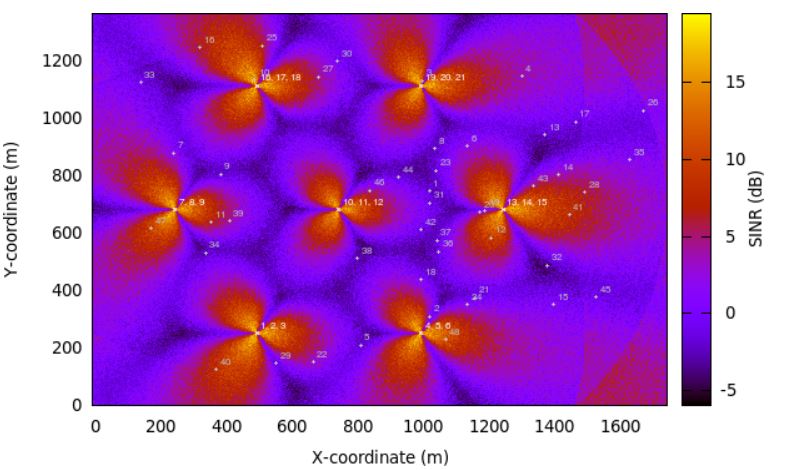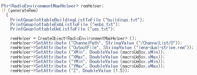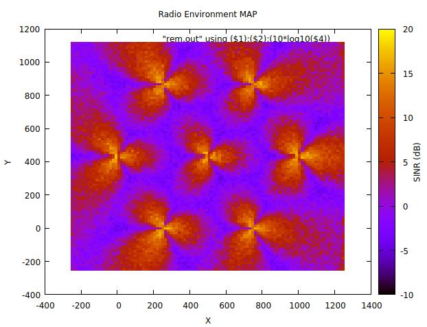 NS3에서 제공하는 example code인 lena-dual-stripe.cc 를 이용하여, 아래 사진과 같은 REM 출력할 것.