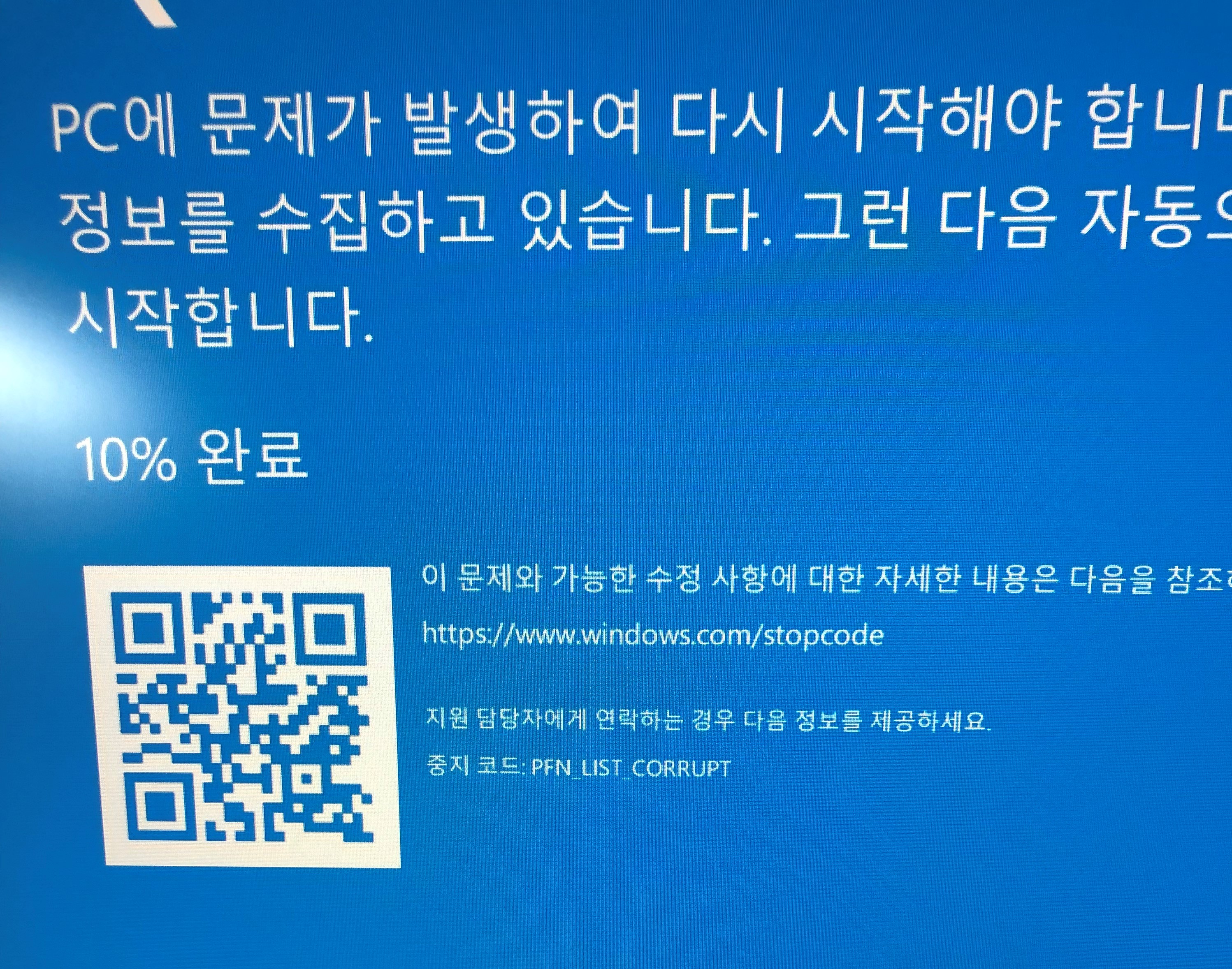 2. 사용 중 블루스크린 발생(pfn list corrupt error)